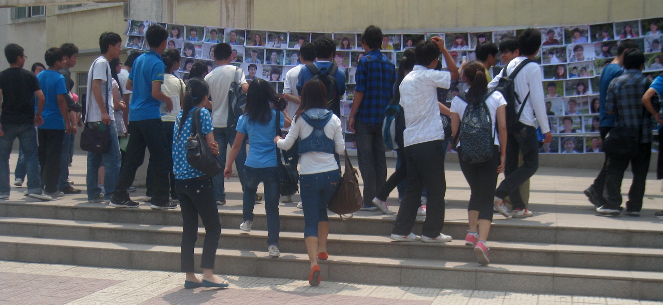 同学们驻足观看西科微笑墙