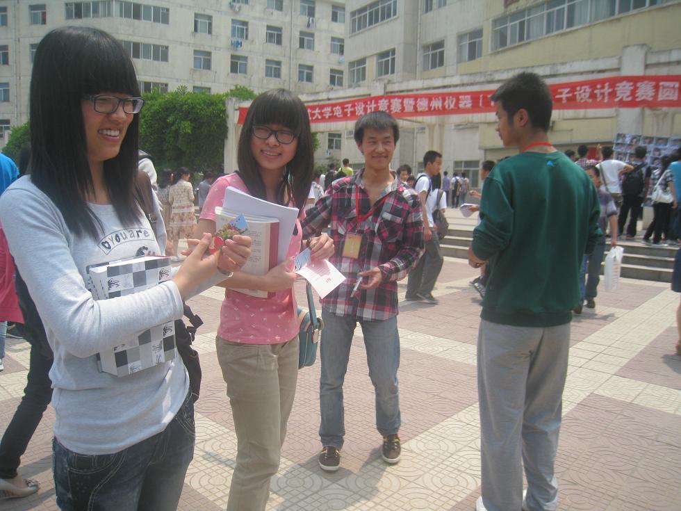 工作人员为来往学生发送宣传材料