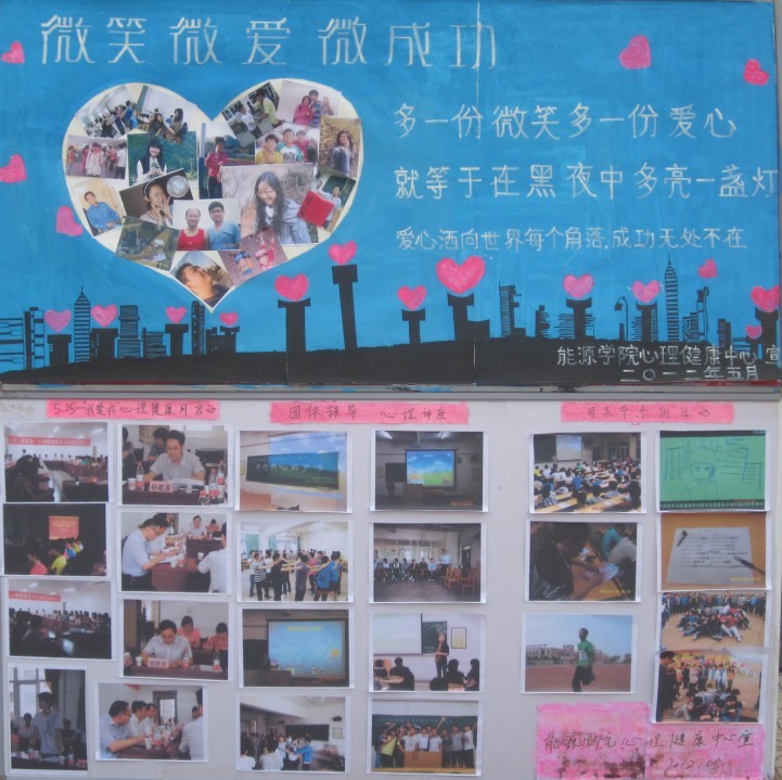 下午4点在广场还举办了学院心理健康节板报评比活动,各学院负责心理健康工作的辅导员老师应邀到场担任现场评委。主持人对每幅板报的立意、内涵进行现场解说,并由评委老师现场打分,最终,通信学院获得了一等奖,建工学院、艺术学院获得二等奖,能源学院、测绘学院、地环学院、继续教育学院获得三等奖。