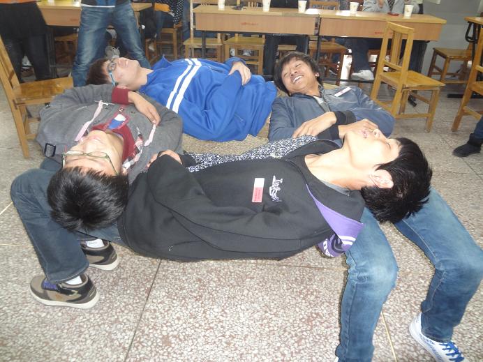 联谊活动首先在3教503教室拉开序幕,各校心协负责人互相进行自我介绍,增进了大家之间的熟悉感和亲切感。我校心协在互动环节精心设计的心理游戏不仅让四校心协成员展开PK,也让大家都有机会参与其中:信任圈增加了大家的团体意识,猜成语活跃了大家的思维、盲人之旅锻炼了大家的合作意识。室外环节将活动气氛推向了高潮,无敌风火轮不但考验了协会成员的动手能力,还考验了大家的相互配合水平。同学们尽情投入到活动中去,斗智斗勇,欢乐溢于言表,彼此欢快的气氛中相互交流,加深了彼此的友谊。
