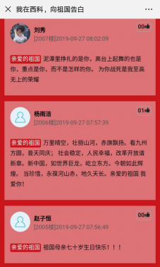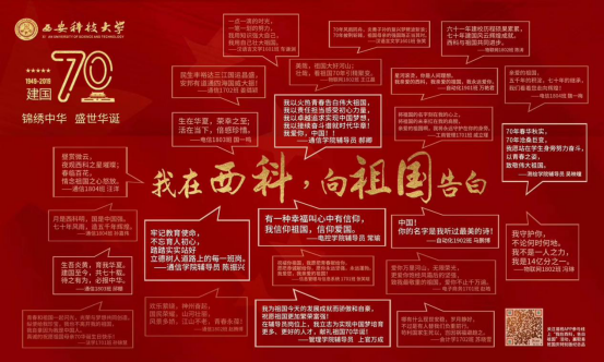 为庆祝中华人民共和国成立70周年,大力弘扬爱国主义精神,我校易班发展中心近期举办“我在西科,向祖国告白”主题线上活动,全校师生共同礼赞新中国。