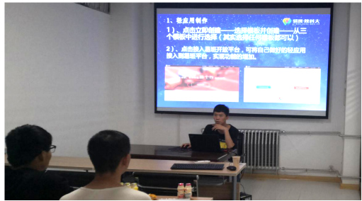 其次,由陕西科技大学易班学生工作站学生助理何军峰关于图文编辑的美化及轻应用搭建的技巧与我校易班工作人员进行了热烈的交流讨论。随后,我校易班工作人员针对会上所学习内容进行了实践操作,为日后更好的展开工作夯实基础。